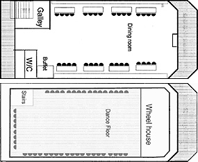 The covered upper deck is great for dancing or just admiring the view. With catering facilities on board, a range of menus